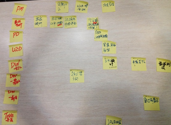 这是一个数据产品的项目,而我们都不是对此很有经验的人。所以我们召集到所有相关的角色,组织了一次头脑风暴及卡片分类法的混合式应用。
