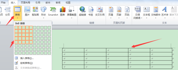 ② 直接点击工具栏上的"插入表格"按钮,用鼠标在出现的表格框内选择合适的行和列,然后点击鼠标左键;观察建立的表格。