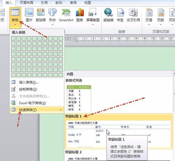 步骤1:点击插入--表格--快速表格,选择内置格式