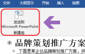 6、设置完成以后,等级新建选项卡下面的发送到Microsoft PowerPoint,然后页面就会自动切换到PPT文稿中,而且格式已经自动转换为了PPT格式,只需适当的做微调即可