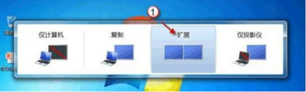 1、首先将电脑连接投影时设置成“扩展”模式,如下图: