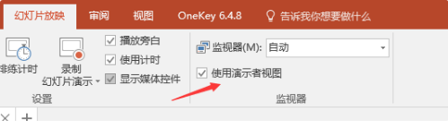 2、在PPT工具栏上“幻灯片放映”下勾选“使用演示者视图”。
