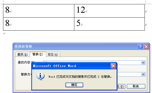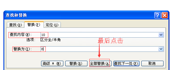 注:“替换”按钮的作用是一个一个替换,“全部替换”是将当前word中所有的“10”,替换为“8”。应根据具体情况选用。