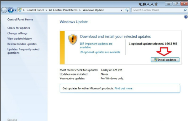 4、在弹出的界面中选中一个中文语言包Install updates ,如图所示。