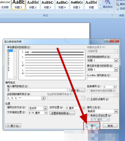 弹出 “定义新的多级列表”