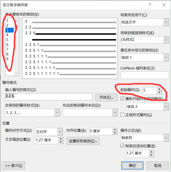 依次选择左边的框,修改右边的框, 一步一步来。修改到 指定的级别,然后再指定 起始的编号。 这个修改好后, 后面的都会依次而变, 哪里不对了,再从那时候开始修改,后面的依然会依次而变。