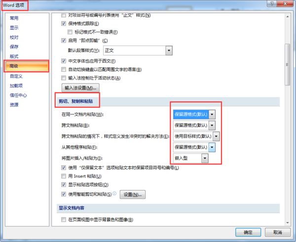 word2007怎么设置粘贴选项