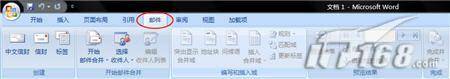 首先你需要做的事就是在Word中打开一个新建的文档。在Word2007中,有一个专为邮件而设的选项卡。