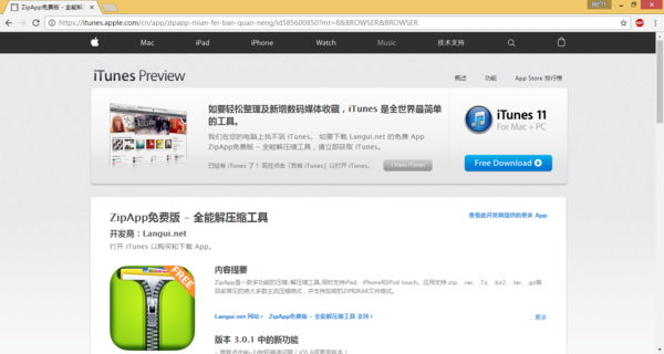 方法2:打开iTunes官网>搜索ZipApp免费版>在iTunes中查看(或者在iTunes中搜索ZipApp免费版)>安装至iPhone