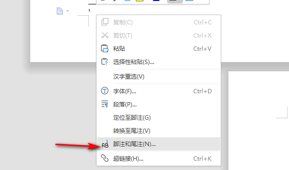 (1)将光标移到要插入脚注和尾注文字的右侧。