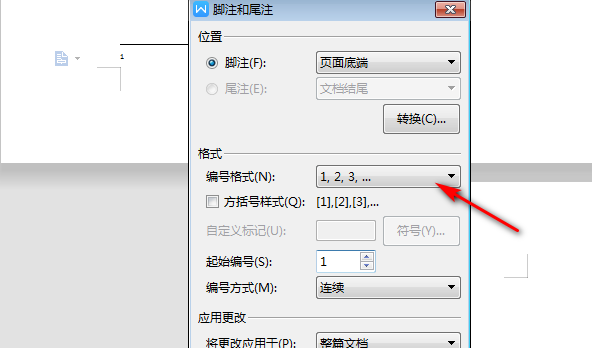 5、进入脚注和尾注页面,就可以设置脚注的格式还有应用了。