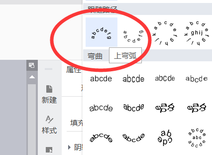 5、在下拉框中点击“根据路径”中的“上弯弧”即可。