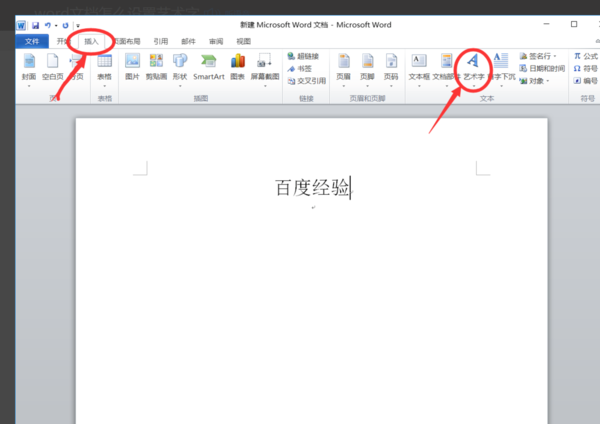 1、打开word文档,艺术字的添加和修改都在插入界面,点击插图以后找到艺术字添加艺术字功能