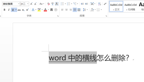 word中 文字中间的横线怎么去掉