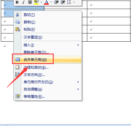3、之后我们进行右击,弹出的界面,我们点击合并单元格;