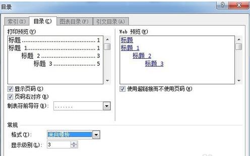 进入插入目录的预览框和设置框,可以进行目录形式、风格以及每个序列的设置。