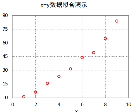 1.首先作出x,y数据的散点图,