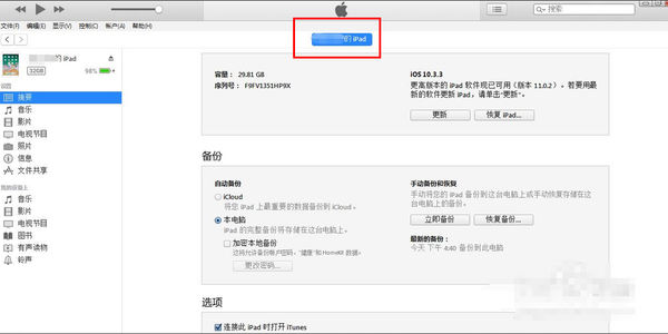 1最后一种方法用 iTunes 软件来把我们的文档导入到 iPad 中。把 iPad 与电脑上的 iTunes 和数据线连接起来。点击 iTunes 右上方的“iPad”图标