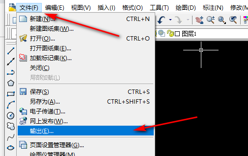3、打开CAD文档后,点击左上角的文件,然后选择输出选项。
