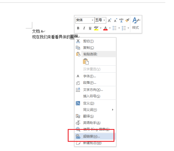 这里以在"文档A.doc"创建链接到"文档B案例.doc"的一个页面为例。