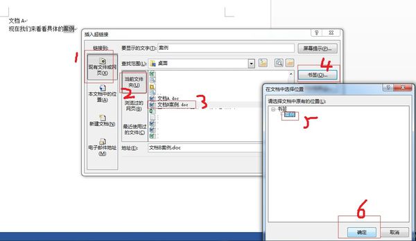 3、在文档A中创建超链接,步骤如图。