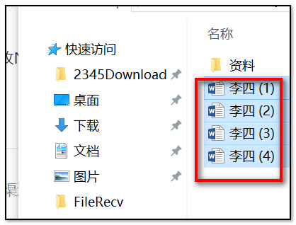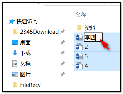 3、点击重命名以后,此时任意将一个文件重命名为李四;