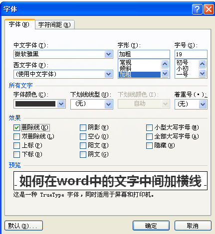 如何在Word文档的文字上打横线,不是下划线,是中划线