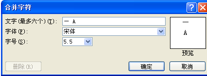 2、弹出合并字符对话框,在文字处输入—半角空格A半角空格即可。
