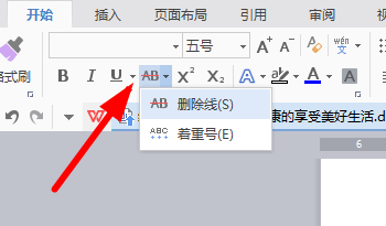 2.点击菜单上方的开始----删除线命令,就可以给文字添加中间的横线了。