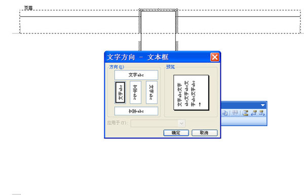将光标定在文本框中,执行“格式→文字方向”命令,打开“文字方向—文本框”对话框,选中“右边”一种文字方向样式,确定返回。