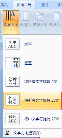 4、单击页面布局----文字方向----将所有文字放置270度;