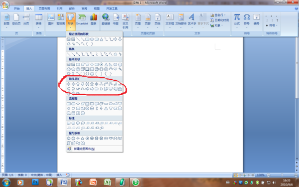 如果你使用的是2007版的话,可以在插入选项中找到插入图形选项,里面有一个箭头总汇,选择你所需要的就行了!如果是2003版的话,也可以在插入选项中找到图形,里面也有这一项!