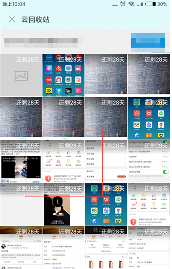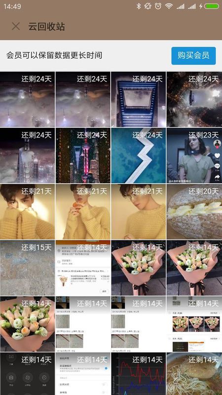 6、在连接到网络之后,回收站中会显示被删除的照片,照片会被保存30天,如果30天之后不选择任何操作,会被自动清空。当然,小米云会员可以享受更长的回收站存储时间。