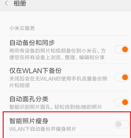 3、进入设置页面之后,建议大家开启页面中的“智能照片瘦身”功能,开启该功能之后不仅可以及时进行照片的同步,同时还可以节省手机的存储空间。