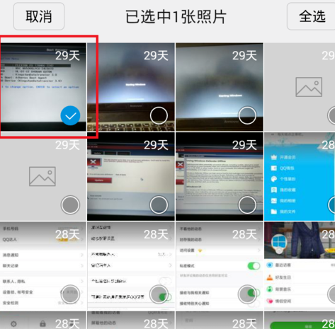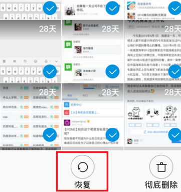 7、接下来,该页面中,我们可以一张一张查看被自己误删除的照片,由于是采取了按时间顺序排列的方法,查找起来也是很方便。我们长按选中其中的一张图片,在下面的菜单按钮中选择“恢复”按钮即可。