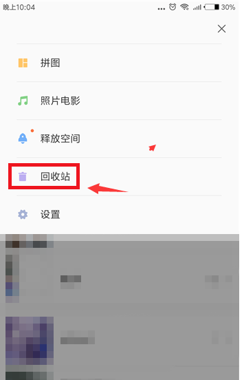 5、接下来,我们继续按下手机中的菜单左键,进入相册应用设置页面之后,我们可以在设置页面底端看到“回收站”选项,点击进入回收站页面。