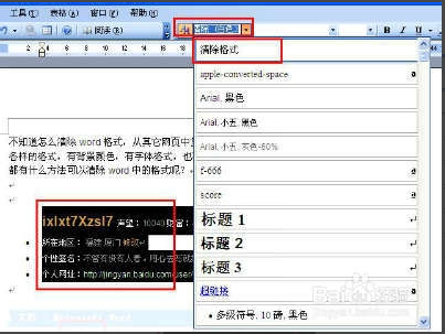 如果您是word2007的话,建议您用一下方法去除文章格式: