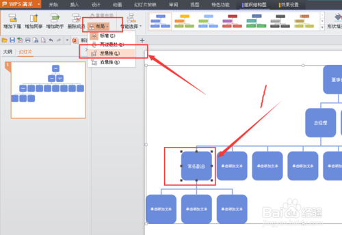 6,对出现下属超过3个以上的,可以进行布局编辑,按照下拉菜单中的格式进行修改。
