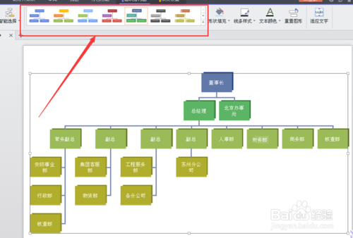 第七,编辑好之后,可以点击上方的颜色模板,对组织机构图进行颜色选择。