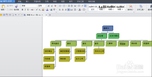 3、一幅美观的组织结构图就制作好了。当移动其中任何一个元素时,其连接线是随之移动的。足以和MS Office下的组织结构图相媲美。