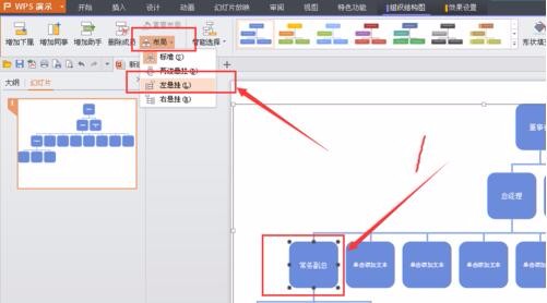 第六,对出现下属超过3个以上的,可以进行布局编辑,按照下拉菜单中的格式进行修改。