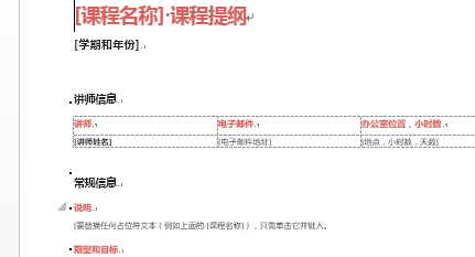 5.点击"创建"按钮之后,就可以得到这个"教师课程提纲"内容的文档。这样就解决了Word模板是怎么使用的问题了。