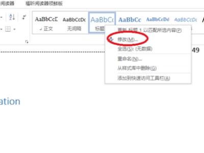 1、首先我们打开Word,鼠标右击标题一点击“修改”选项。