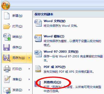 1、在office下拉菜单中,选择另存为中的其他格式,如图所示。