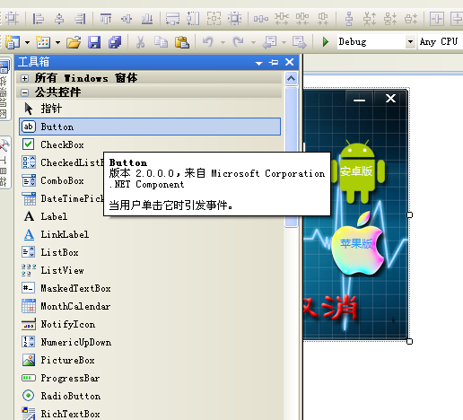 创建c#应用程序然后就会出现可视化界面,旁边有工具栏,按照需要绘制界面即可。