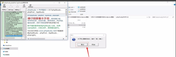 ⑥ 进入之后有一个是否防止初始化 点击是 那么现在的PHPstdy已经安装好了。