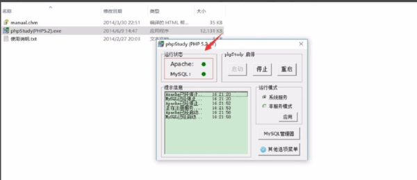 这里有两个绿灯 , 一旦点击成功就是已经安装正确了 如果这个东西要是不弄清楚 那可以折腾死你. Apche:服务器 。作用:存储你网站的程序和文件。MySQL:数据库 作用:存储你网站的数据信息 比如网站更新了一下文章 什么的 都会有一些数据信息是不是 包括里面的一些文章都是属于数据类型的。