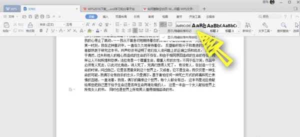 方法一,点击上方工具栏开始----文字工具,选择删除空段命令,这样文档中所以空白的段落和空白页就全部消失了。
