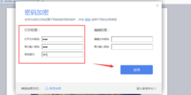 注意:经过加密设置后,以后需要打开该文档时,需要输入正确的密码,否则文档不能打开。