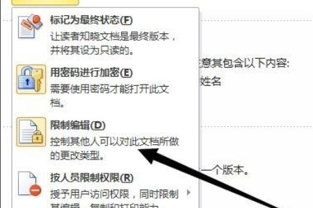在“保护文档”任务窗格中,选中“编辑限制”下的“仅允许在文档中进行此类编辑”复选框,再单击下列选项之一。